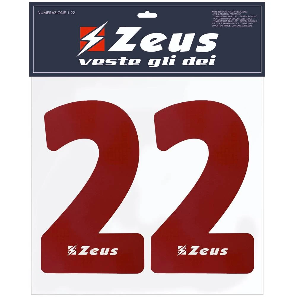 Zeus Kit De Transfert Des Numéros De 1 à 22 25cm Senior Rouge Foncé